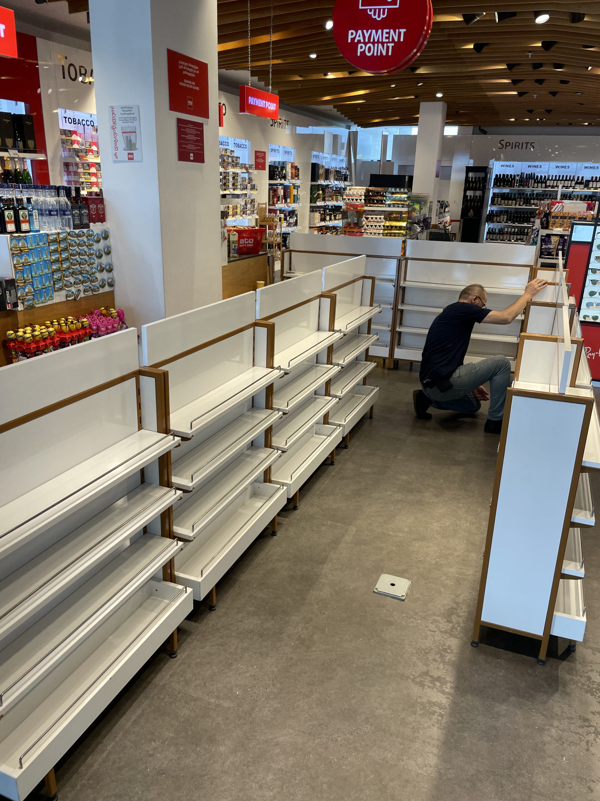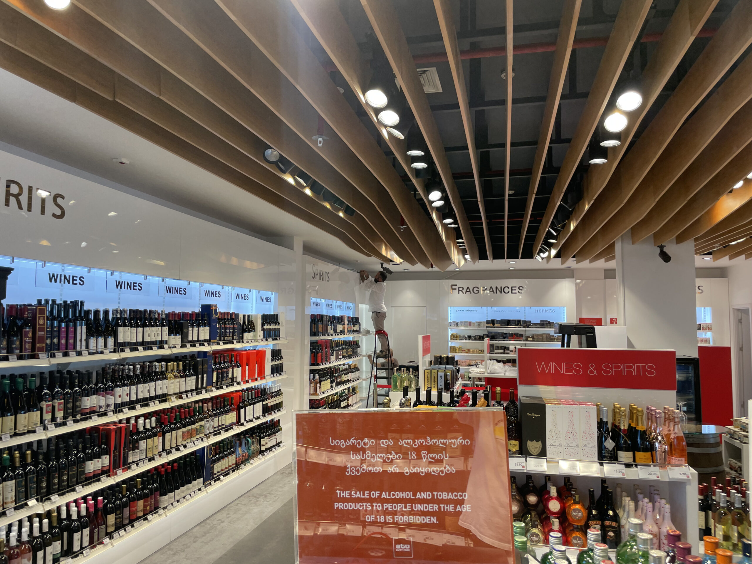 ATU Duty Free Mağazasının ürün teşhir üniteleri, ürün rafları ve CNC kesim kenarlıklı içecek dolabı ünitelerinin tasarım ve uygulaması firmamız tarafından yapıldı.