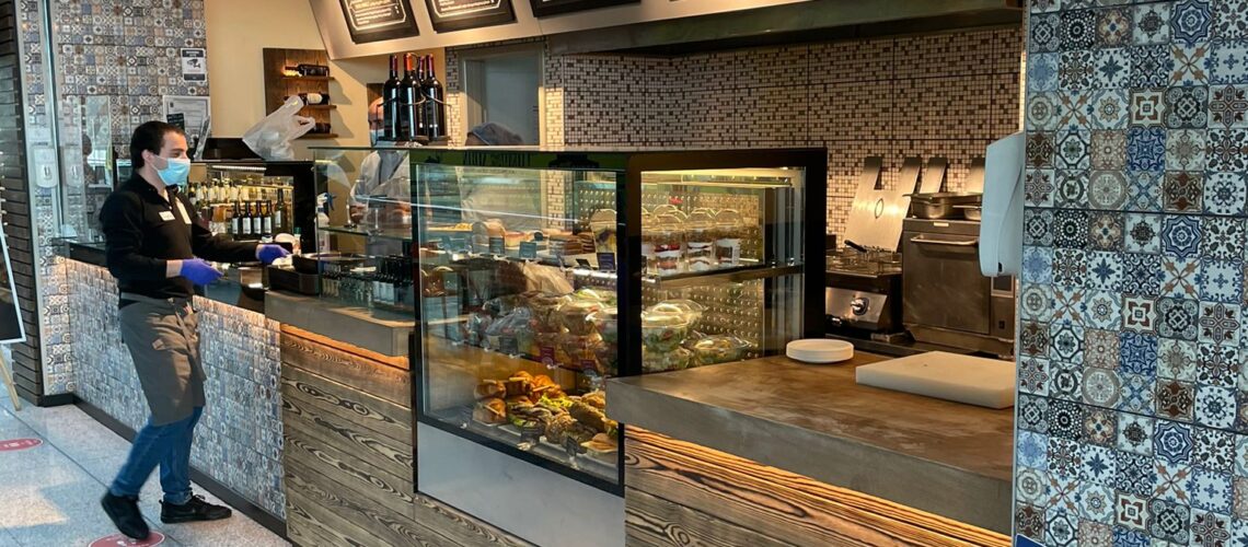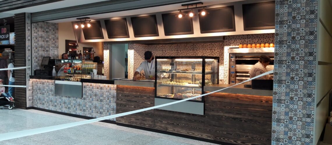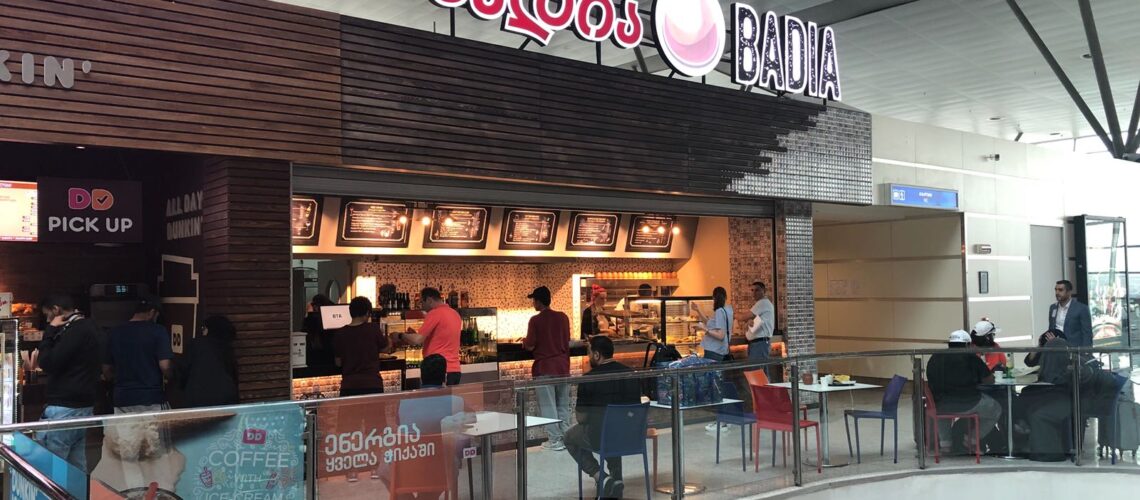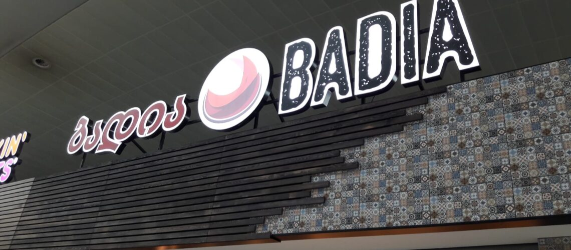 Tiflis Havaalanı’nda yer alan Badia restoran; bankosu, seramik ve reklam uygulamaları ile komple işlerini yaptığımız bir proje. 50m² alanda bankodaki teşhir alanlarının yanında zemin tavan imalatları ile elektrik ve mekanik projelerin tamamı tarafımızca yapılmıştır.