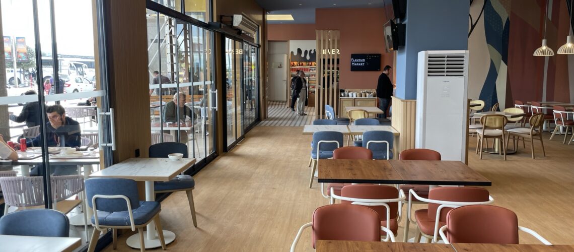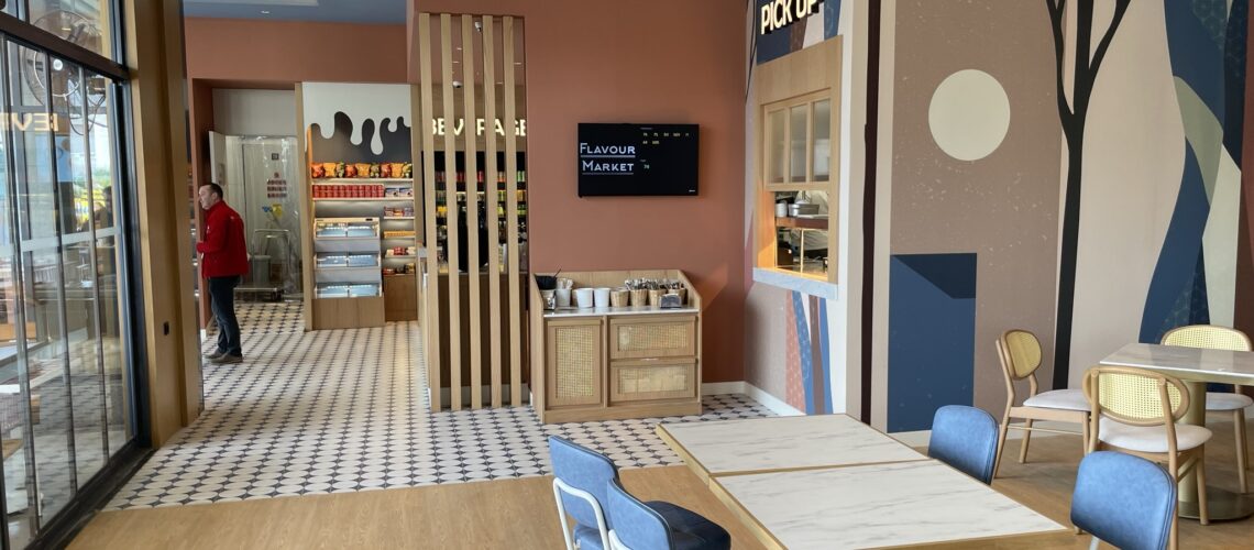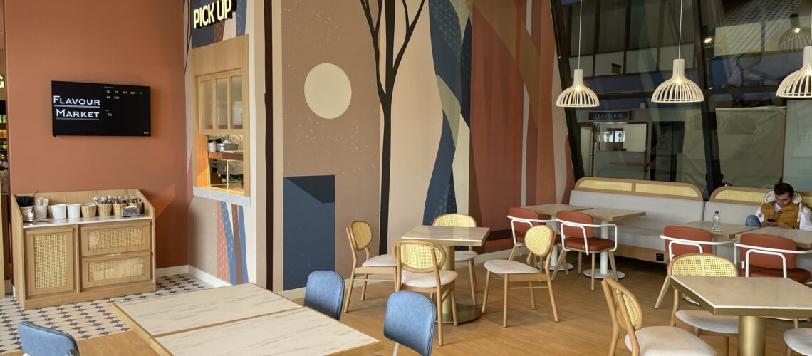 Bta’nın yeni konsept restoranı Flavour Market,  Bodrum Havalimanı İç Hatlar Terminali’nde 350m²’lik bir alanda yer alıyor. İç ve dış oturma alanlarını içeren bu projede ayrıca mutfak, teknik alan, yemek bankosu, zemin yenilemesi, dış cephe kaplaması gibi iş kalemleri bulunuyor. 120 kişi kapasiteli restoranın alt yapı ve mobilya imalatları dahil bütün proje uygulaması firmamız tarafından tamamlandı.
