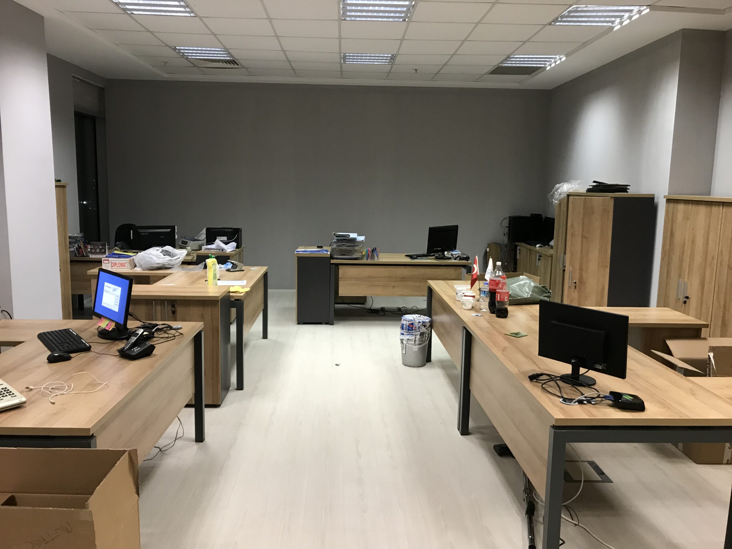 İstanbul’un önemli ticari merkezlerinden Basın Express yolunda yenileme işlemlerini yaptığımız ofisin zemin pvc uygulamaları ve asma tavan imalatlarının yanı sıra hareketli mobilya uygulamaları da yapıldı. 15 kişilik ofiste; cam bölme panel imalatları yönetici ofisi ve toplantı odası için kullanıldı. Islak hacimler tamamen elden geçti.