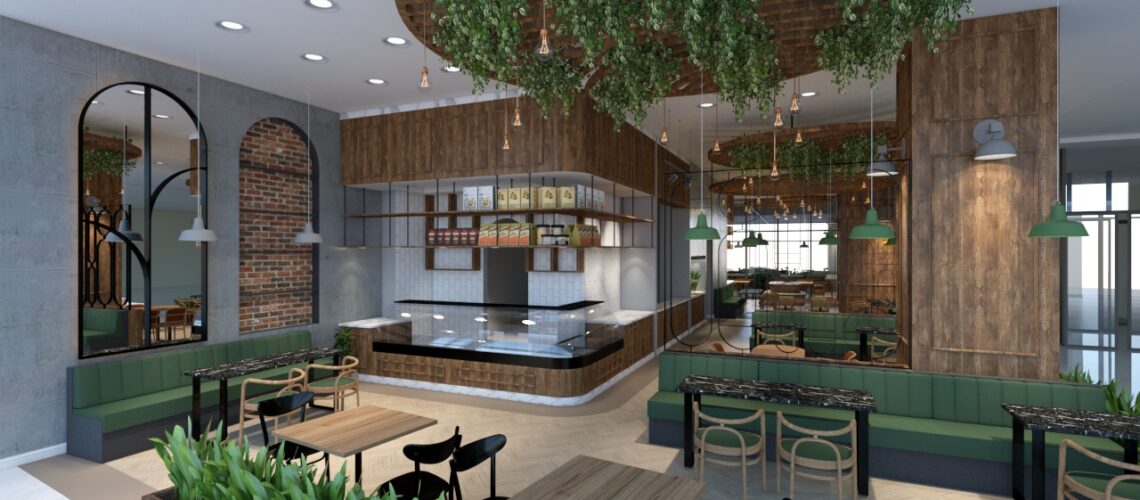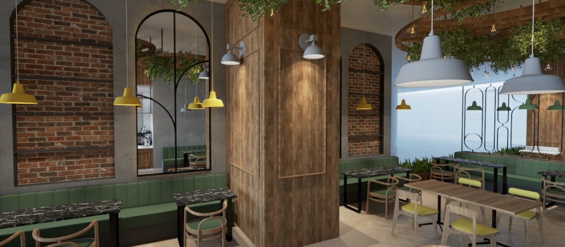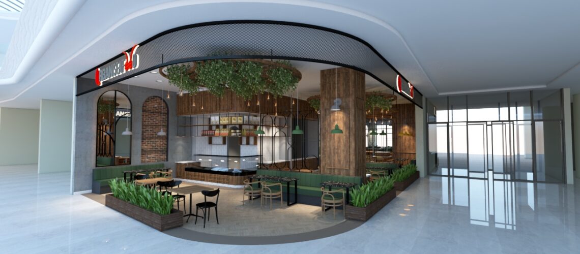 Tasarım ve uygulama çizimlerini yaptığımız, 2021 yılında tamamlanan Muscat Plate & Plate. Endüstriyel rustik tarzda tasarlanan bu projenin giriş kısmında çarpıcı mesh alın detayı ve bitkilerle desteklenmiş davetkar tavan dekoru kurgulandı. Muscat’ın en işlek caddesi Al Araimi Bulvarı’nda yer alan mekan, aynı anda 150 kişinin faydalanabileceği, terasında açılır mikro klimalı tentesi bulunan bir yer. Et, balık ve kafeterya alanından oluşan bütüncül bir yapıya sahip.