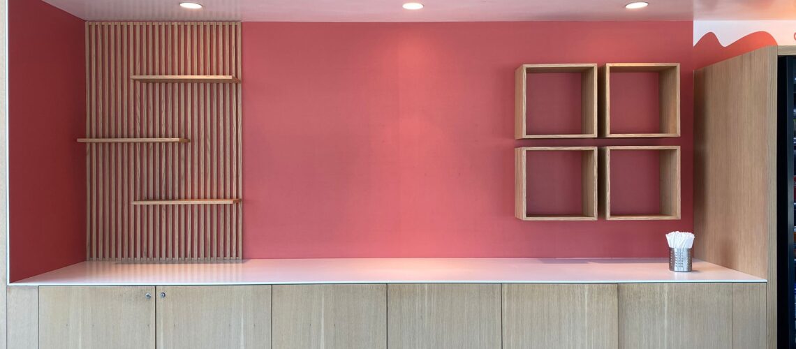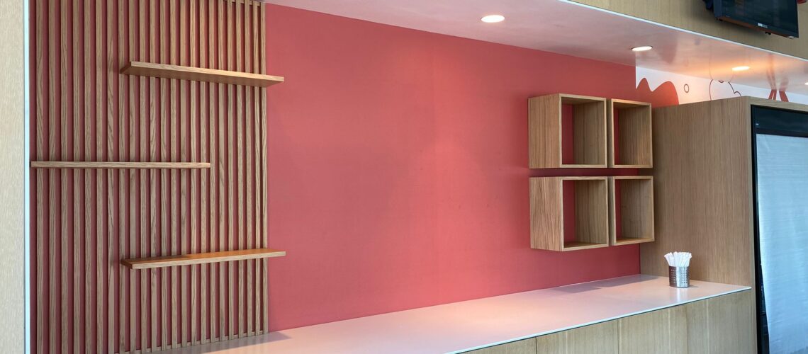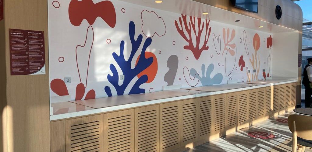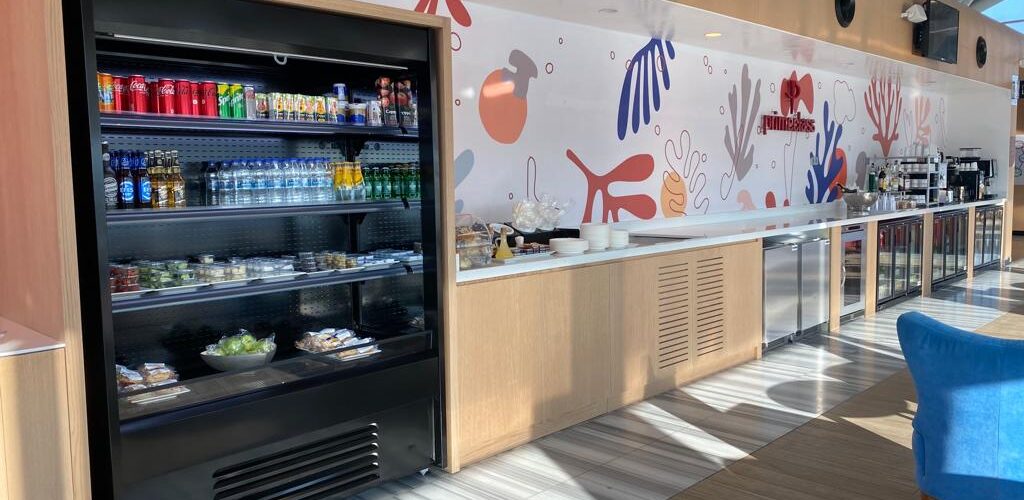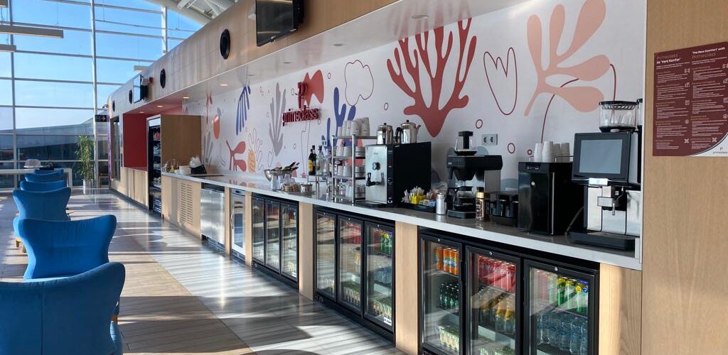 İzmir Havalimanı İç Hatlar Terminali’nde yer alan Primeclass Lounge’un servis bankolarının yenilenmesi ve ek alan oluşturulması işi 2022 yılında tamamlanmıştır. Quartz tezgah ve meşe kaplama bankoların tamamlayıcısı olarak yapılan duvar kağıdı uygulaması ile birlikte tasarım bütünlüğü sağlanmıştır.