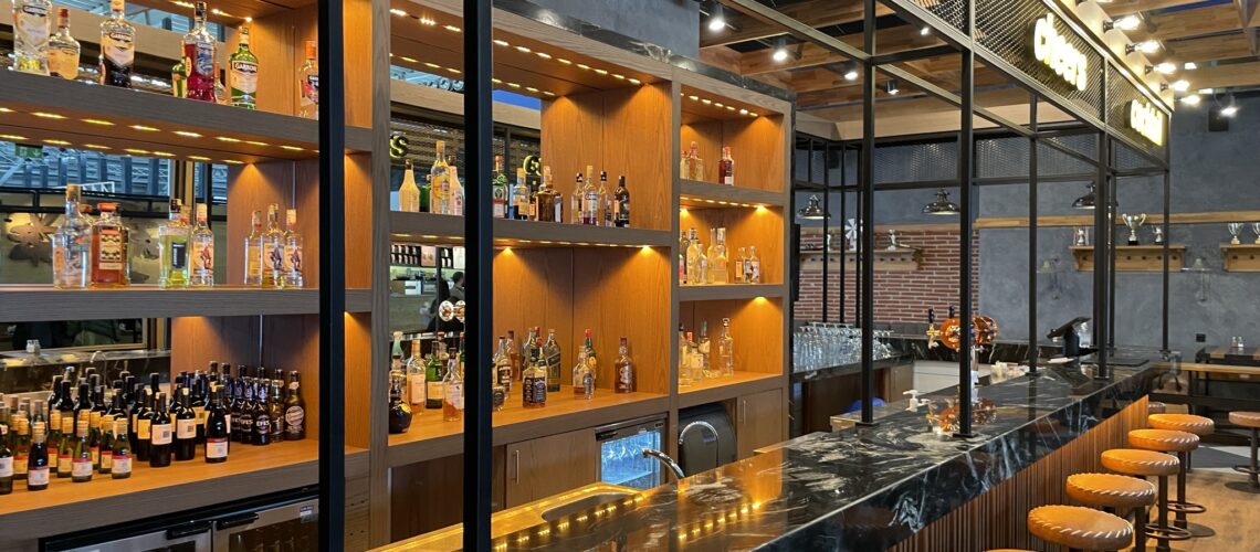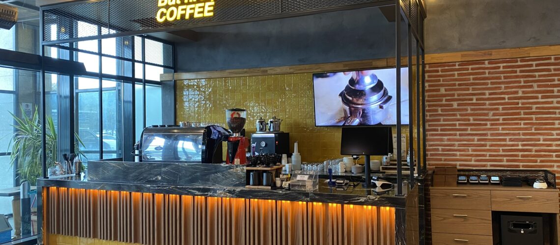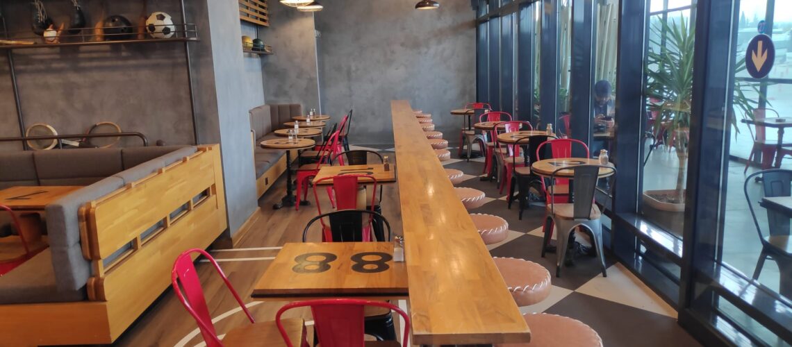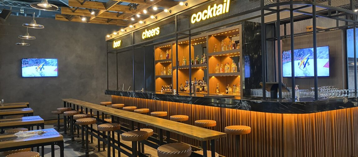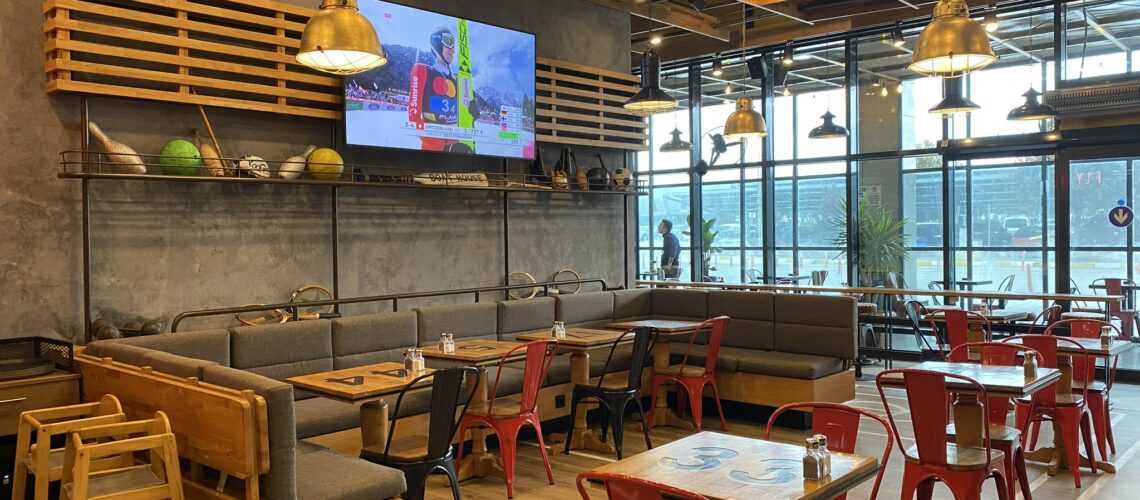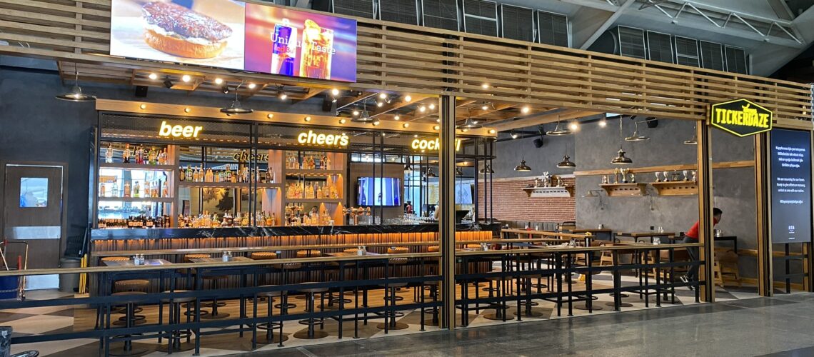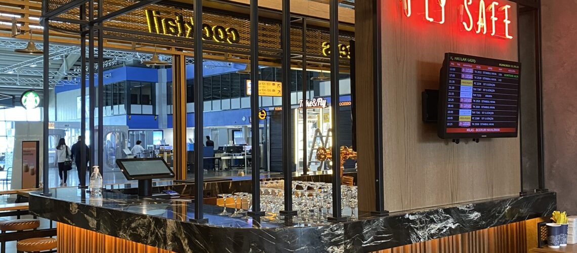 Milas Bodrum Havalimanı İç Hatlar Terminali Giden Yolcu bölümünde 350 m² alanda uzun yıllardır hizmet veren Tickerdaze restoranının yenilenen konseptine uygun dönüşüm uygulaması firmamız tarafından gerçekleştirildi. Daha verimli alan kullanımı, teras düzenlemesi, yeni kahve ünitesi ve bar imalatlarını kapsayan bu yenileme 2023 yılında tamamlandı.